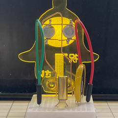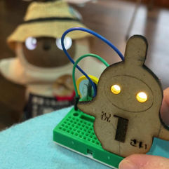 傾きセンサーにより、起こすと目のLEDが光ります。倒すと消えます、